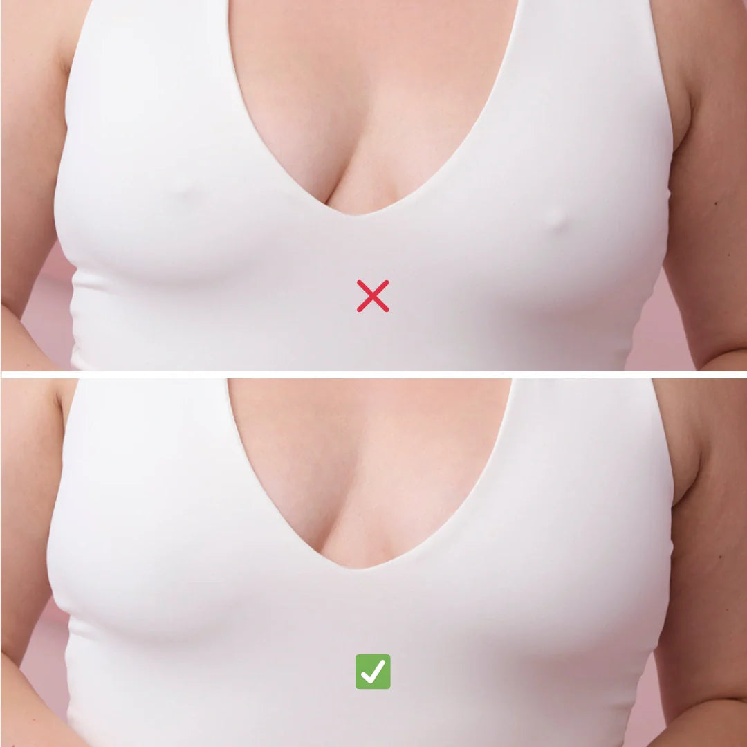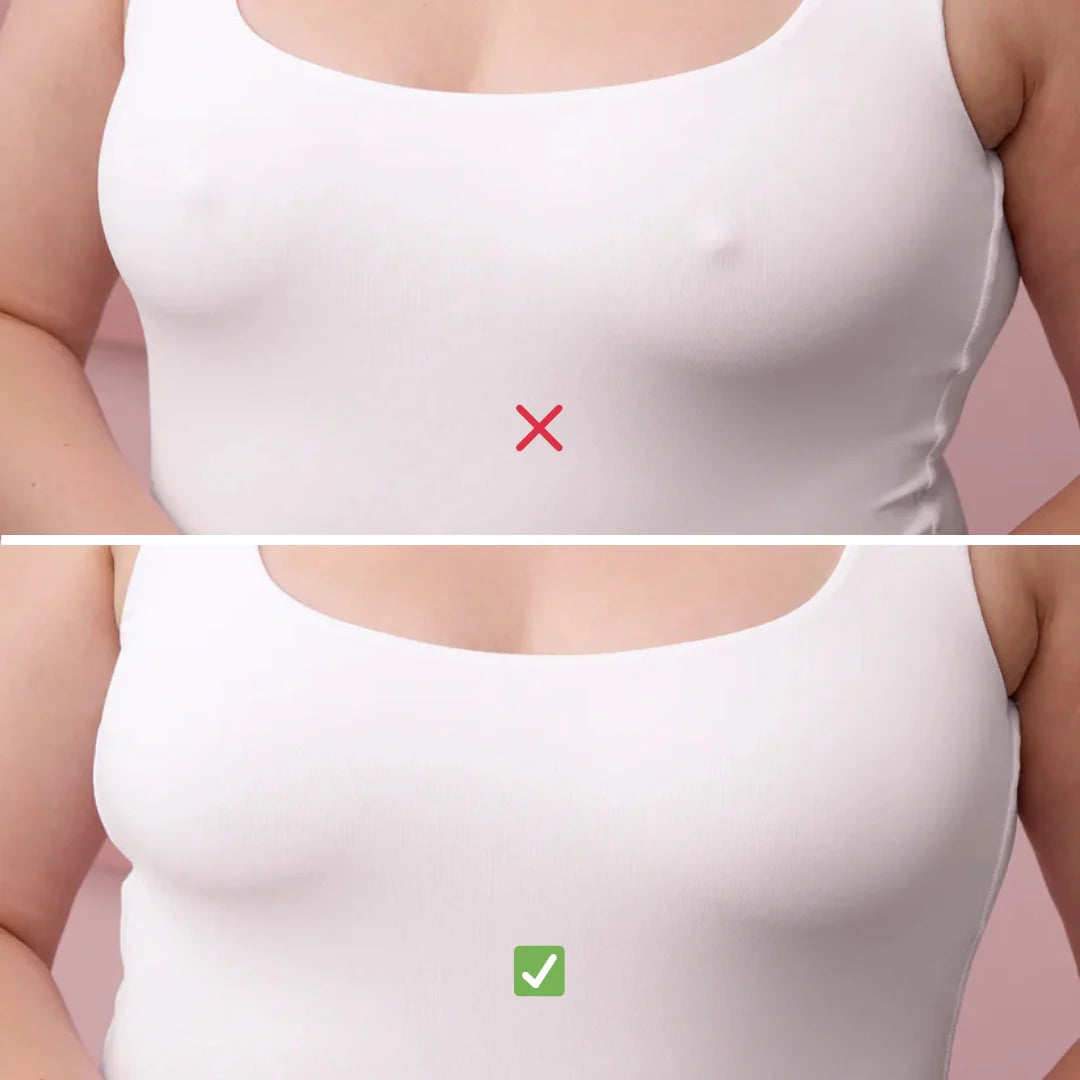 Son ideales para tops ajustados, ya que no usamos adhesivos irritantes. Se adhieren suavemente a la piel con el calor natural de tu cuerpo para una cobertura suave y sin molestias.
